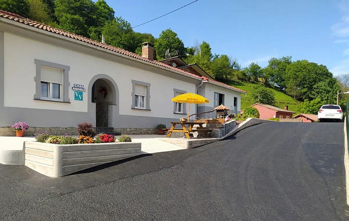 La vivienda se encuentra en la falda de la Sierra del Aramo, mítica por la vuelta ciclista a España (Angliru).