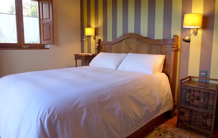 Capacidad seis personas, dos habitaciones con cama de l,50 y una habitación con dos camas de 90, todas con baño. La lencería es de algodón y las fundas nórdicas de plumón. Algunos muebles son de anticuario. Las ventanas y balcones de las habitaciones y sala de estar tienen mosquitera.