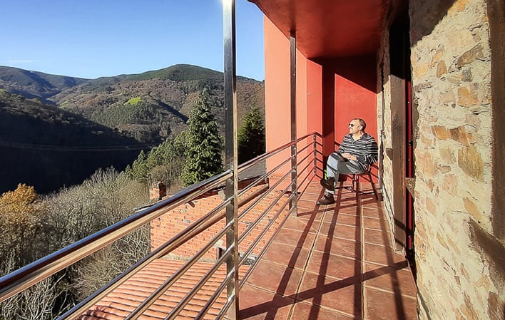 Dispone de un corredor con maravillosas vistas al valle, en plena naturaleza y aislado del pueblo, entre La Espina y Luarca/Ḷḷuarca, límite entre los concejos de Salas, Tineo y Valdés.