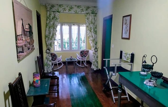 La casa es de una arquitectura antigua, con corredor. Tiene jardín para una estancia de descanso y comidas al aire libre.