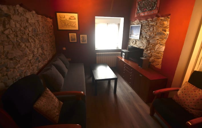 – Una sala de estar en la que se encuentra un cómodo sofá que se convierte en cama doble en unos segundos.