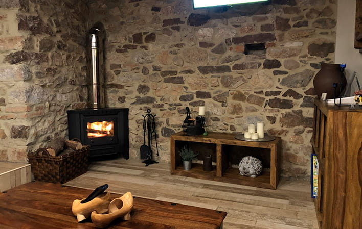 La casa tiene 3 dormitorios con tv, cocina equipada con lavavajillas, microondas, lavadora, un salón con tv y chimenea y dos baños con ducha. Es un lugar muy tranquilo para relajarse y poder pasear por la naturaleza
