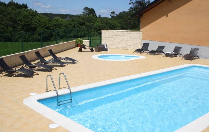 Complejo de apartamentos rurales en planta calle con porche, piscina y barbacoas comunitarias. Finca ajardinada.