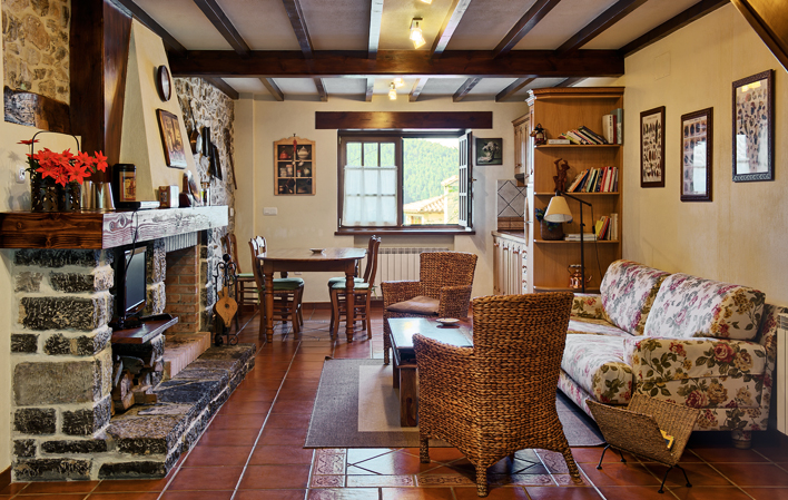 Estos amplios y acogedores apartamentos constan cada uno de salón con chimenea y comedor-cocina totalmente equipada, además del menaje propio para su capacidad. En la planta alta, dos habitaciones dobles y un cuarto de baño completo.