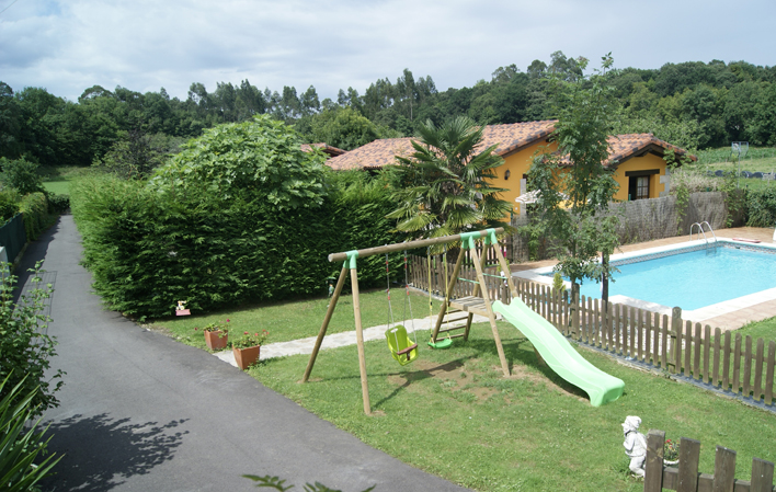 A tan sólo 5 minutos de la playa y a 10 de la villa de Llanes. Con vistas a El Cuera, entorno rural y tranquilo, parcela individual y piscina comunitaria.