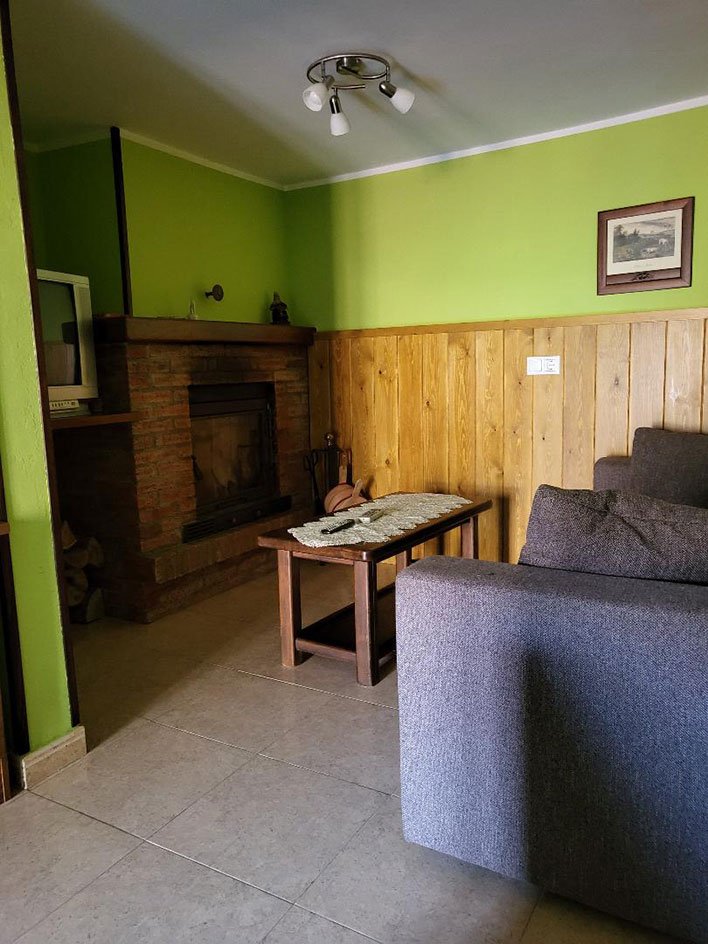 La Xiana casa rural de 2 plantas cuenta con cocina y baño, en la planta baja y habitación con cama de 1.35 y salón con chimenea y televisión en la primera planta.