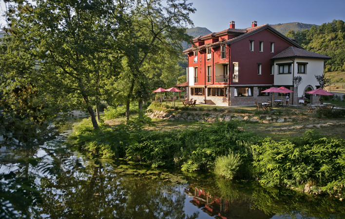 Hotel en el margen derecho del río Güeña, uno de los afluentes del Sella a su paso por Cangas de Onís.