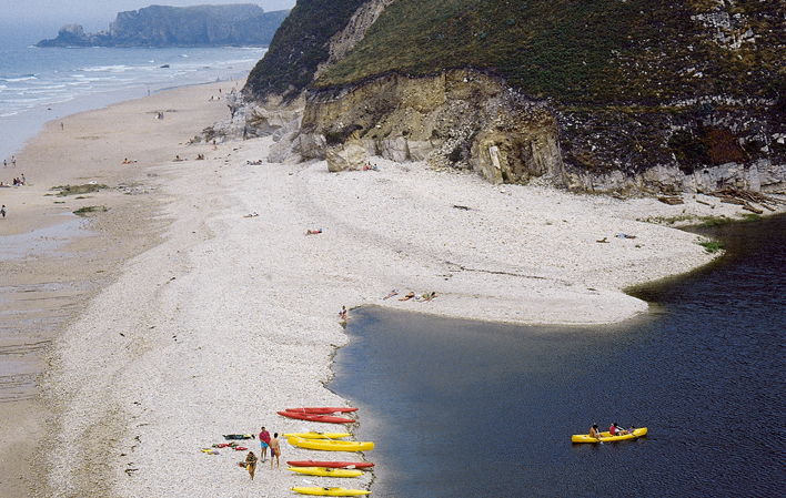 Este areal é um lugar ideal para a prática de desportos como o surf e a pesca. De facto, é a foz do Bedón, um rio de trutas frequentado por pescadores. O bungee jumping também é praticado no viaduto que ladeia a praia. Considerada muito perigosa para o banho devido à sua exposição a ondas fortes, é muito procurada pelos surfistas.