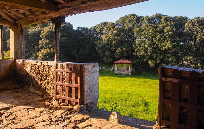 A partir da N-634, sair no cruzamento de El Peral para a RD-1 em direção a Pimiango. Uma vez lá, descer em direção à capela de San Emeterio.