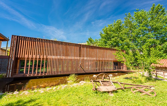 No exterior do edifício, um espaço é dedicado aos engenhosos dispositivos que utilizavam a água como força motriz, incluindo o moinho hidráulico, utilizado para obter farinha; e as mazapilas, que aproveitavam as correntes de água nas pastagens para afugentar animais como javalis, ursos e lobos, evitando assim que causassem danos às culturas e ao gado.