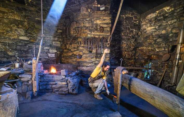 O edifício da forja organizava-se em torno de dois espaços que albergavam os dispositivos hidráulicos: o malho e as "barquinas", ou grandes foles, onde, além disso, se localizava o forno, incluído na mesma zona que alberga o malho. O conjunto era complementado pelo complexo hidráulico constituído pela barragem sobre o rio, o canal e o tanque de armazenamento de água ou "banzao".