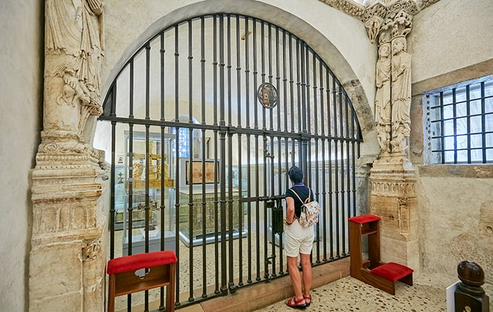 Guardada no coração da Catedral de Oviedo, a Câmara Santa protege algumas das relíquias mais veneradas do cristianismo. Destacam-se a Arca Santa - que, segundo a tradição, chegou após um longo êxodo de Jerusalém -, a Cruz da Vitória, a Cruz dos Anjos e a Caixa de Ágatas, jóias únicas da fé, da história e da arte medieval asturiana.