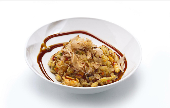 - A receita baseia-se num arroz branco salteado com legumes e camarões e temperado com soja.