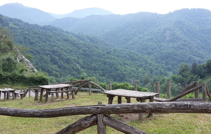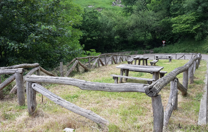 - Zona de mesas y bancos