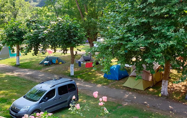 Camping situado al borde de los ríos Covadonga y Güeña y enclavado en un paisaje de una belleza natural incomparable.