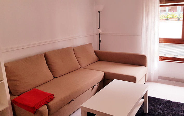 El apartamento cuenta además con un luminoso salón equipado con un sofá cama adicional, perfecto para alojar a huéspedes adicionales si es necesario. La cocina está completamente equipada con todo lo necesario.
