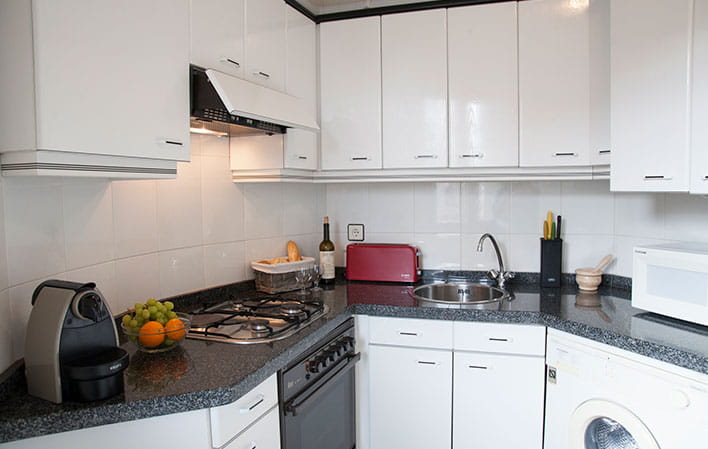 La cocina está completamente equipada con electrodomésticos esenciales, como lavadora, tostadora y cafetera Nespresso. Desde una de las habitaciones y desde el salón, se puede disfrutar de vistas hacia el pintoresco puerto, lo que añade un encanto especial a la estancia.