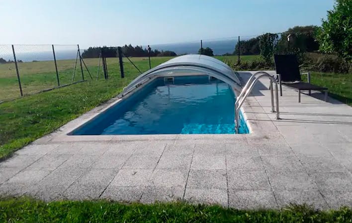 La parcela está totalmente cerrada, y cuenta con aparcamiento, porches cubiertos, barbacoa y una piscina privada climatizada que está disponible para el baño desde el 1 de Junio hasta el 30 de Septiembre.