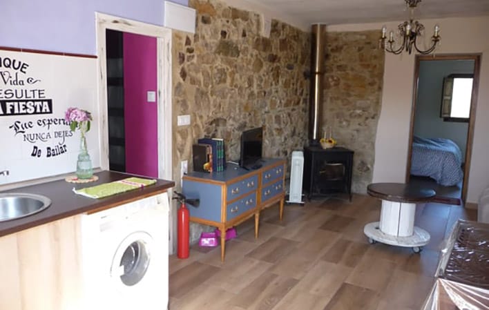 Totalmente amueblada y equipada (vitrocerámica, lavadora, microondas, menaje, tv, sábanas, etc..). Por periodos cortos de tiempo. Con chimenea y patio vallado y soleado, con barbacoa. Dispone de cocina, un dormitorio para 2 personas (cama matrimonial), otro dormitorio con 2 camas y saloncito (máximo 4 personas). Con terraza-jardín independiente. Admitimos mascota.