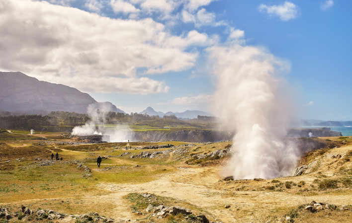 E é nesta costa alta que se pode apreciar um dos espectáculos mais sensíveis do Mar Cantábrico: os bufones de Pría ou os de Arenillas, surpreendentes quedas de água que emergem das profundezas, através de fendas e chaminés naturais, provocando um temível "bufido" que atinge o seu máximo esplendor nas tempestades de inverno. O Caminho Costeiro de Llanes ou as Falésias do Inferno ( Ribadesella) são rotas bem preparadas para os caminhantes ou entusiastas do ciclismo. Encontraremos praias interiores insólitas no meio da natureza, como a de Gulpiyuri ou o Monumento Natural de Cobijeru. De diferentes miradouros podemos ver enseadas, falésias e ilhotas inacessíveis. Há também entusiastas da pesca desportiva e do mergulho, jet skis, barcos de aluguer ou caiaques que entram nas grutas na base das falésias.