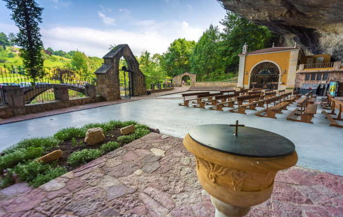 Cantábricos e asturianos já tinham lutado juntos contra legiões romanas e, desde então, o espírito independente dos asturianos orientais foi confirmado em diferentes ocasiões, especialmente na batalha de Covadonga/Cuadonga (722). A basílica atual alberga o verdadeiro santuário: a Gruta Santa. Uma cavidade natural que parece ter sido escavada por vontade divina e onde repousa a "Santina"; não é menos santa por causa do diminutivo, mas mais asturiana e ainda maior, se possível. Segundo a tradição, ela ajudou o exército de Pelayo a vencer. Desde então, não cessaram as peregrinações à sua gruta, nem as orações, súplicas e promessas à Virgem. Mas quem entra na Gruta Santa não precisa de acreditar em milagres. O milagre é estar lá.
